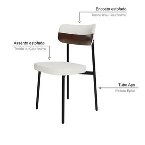 Material Principal Composição: Aço/Madeira Multilaminada/MDP/Espuma/TecidoMaterial da Estrutura Pés: AçoAcabamento Estrutura: Epóxi-PóTipo de Encosto: Fixo AnatômicoMaterial Estrutura do Encosto: Madeira MultilaminadaEnchimento Encosto: Espuma D-22Revestimento do Encosto: TecidoTipo do Assento: FixoMaterial Estrutura do Assento: MDPEnchimento Assento: Espuma D-28Revestimento do Assento: TecidoPossui Braços: NãoTipo: CadeiraModelo: FixoEmpilhável: NãoDobrável: NãoAmbiente Principal: Sala de Estar JantarEstilo: ContemporâneoSuporta Até (kg): 120 kgRecomendações de Uso, Manutenção e Limpeza: Para a limpeza, utilize flanela seca ou pano macio levemente umedecido em água. Utilize um pano seco em seguida. Evite contato com produtos químicos (solventes, thinner, acetona, etc) e não utilize nenhum tipo de esponja de aço.Necessita de Montagem: Sim Acompanha Manual de MontagemComplexidade da Montagem: Média: pode ser montado por mais de uma pessoa e/ou necessite de maior conhecimento para montagem.