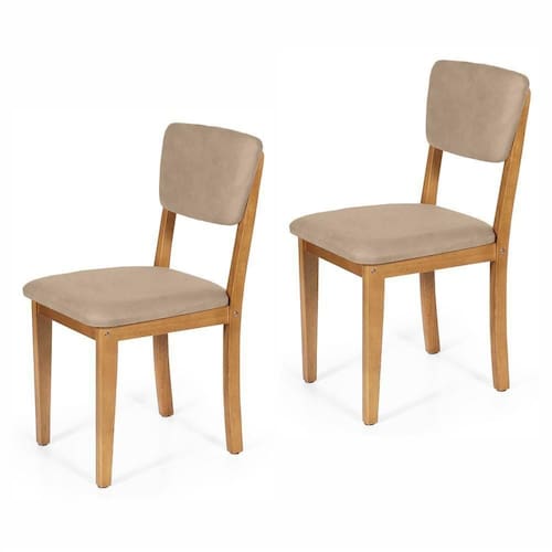 Conjunto 2 Cadeiras De Jantar Estofada Em Madeira Maciça Ella Bege