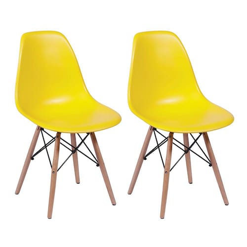 O Conjunto 2 Cadeiras Eiffel com Base em Madeira – Amarelo é ideal para compor e decorar ambientes. Composto por cadeiras Eames Eiffel que suportam até 120kg cada e possuem assento em Polipropileno, o conjunto é perfeito para proporcionar conforto e beleza para sua casa. Características Principais: • Conjunto com 2 cadeiras Eames Eiffel; • Base em madeira; • Assento em Polipropileno; • Confortável; • Suporta até 120kg; • Decoração moderna. Ean: 7908146200526