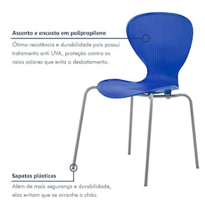Qual a vantagem da cadeira com estrutura tubular? A base tubular oferece durabilidade e um visual moderno. Acabamento da Estrutura: Pintura Altura do assento até o chão: 43,5 cm Ambiente Principal: Sala de Jantar codigo_ean: 7900288223005 Cor: Azul Cor do Produto: Azul Dobrável: Não Escala de Brilho: Fosco Estrutura do Assento: Polipropileno Estrutura do Encosto: Polipropileno Giratória: Não Informações Complementares: Modelo testado conforme normas abaixo para Nível 3 de desempenho - Doméstico Severo:ISO 7173/89 - Furniture - Chairs and stools - Determination of strength and durability (PRI 632/433 - 3a. Ed. Revisão 1)ISO 7174/88 - parte 1 - Furniture - Chairs - Determ Itens Inclusos: 2 Cadeiras Linha ou Coleção: Flash Manual de Montagem e Instalação: https://product-hub-prd.madeiramadeira.com.br/232651045/documents/e6ab7dd4-fa72-49b4-9105-efe801e5c6d21102174160a.pdf Marca: Prima Design Material da Base: Aço Material Principal: Aço Necessita Montagem: Não Origem do Produto: Nacional Peso: 6,8 kg Possui Apoio para Braços: Não Possui Rodízio: Não Quantidade de Itens: 2 Recomendações de Uso, Manutenção e Limpeza: A estrutura deve ser limpa utilizando pano seco de algodão ou flanela. Se necessário, utilize panoumedecido apenas com água, secando o móvel em seguida.Não utilize solvente, álcool, acetona, lustra móveis, produtos abrasivos e outros produtos que contenhamsoda e ou ácidos para limpar e tirar manchas dos móveis.Não expor os móveis à luz solar e ambientes com umidade relativa elevada.Manter a estrutura metálica limpa, utilizando pano seco ou cera a base de silicone. Tipo de Assento: Fixo Tipo de Encosto: Fixo Marca: Não Informado