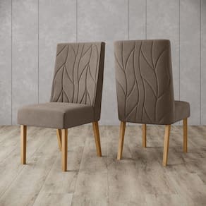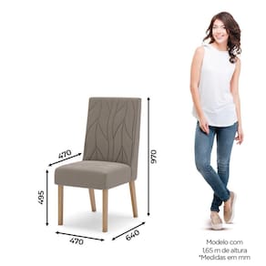 FICHA TÉCNICA: Escala de Brilho Cadeiras: Fosco Peso Suportado por Cadeira: 120 Kg Estrutura Assento: MDF Altura Assento até o chão: 49,5 Cm Revestimento Assento: Nas versões Marrom Amêndoa e Marrom Expresso o tecido é Veludo e na versão Linho o tecido é Linho Enchimento Assento: Espuma D23 Almofada Assento: Fixa Tipo Assento: Fixo Estrutura Encosto: MDP/MDF Revestimento Encosto: Nas versões Marrom Amêndoa e Marrom Expresso o tecido é Veludo e na versão Linho o tecido é Linho Enchimento Encosto: Espuma D15 Tipo Encosto: Fixo Acabamento do Encosto: Bordado exclusivo nos dois lados do encosto Material dos pés: Madeira Medidas por Cadeiras Montada: -A x L x P- 97 x 47 x 64 Cm Peso por Cadeira Montada: 9 Kg
