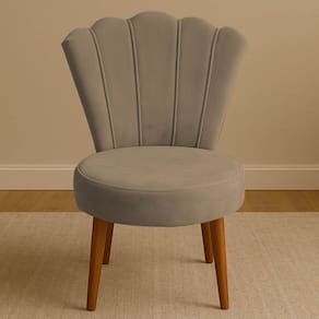 Transforme seu ambiente com elegância e conforto. Esta cadeira possui design moderno em formato de concha, com assento e encosto estofados em tecido suede liso, que proporciona toque macio e visual sofisticado.