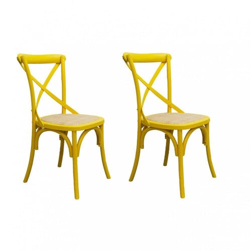 Informações Complementares: Conjunto com 2 Cadeiras fixas destinadas para uso interno, estrutura física em madeira bétula, com encosto vazado em formato X e assento revestido com rattan marroml. Não reclinável, sem ajuste de altura, não empilhável.