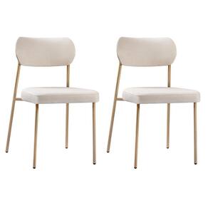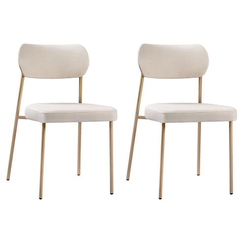 Conjunto 2 Cadeiras Lavínia Linho Bege/aço Champanhe - Salaone Linho Bege/aço Champanhe