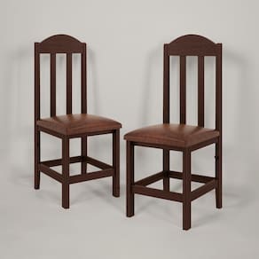 A estrutura é feita de madeira maciça Pinus, garantindo robustez e durabilidade. O acabamento semi brilho confere um visual elegante e sofisticado, destacando a beleza natural da madeira. A estrutura suporta até 120kg, oferecendo segurança e estabilidade. A almofada em corino proporciona conforto ao assento, além de ser fácil de limpar e resistente ao desgaste.