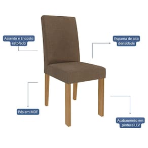 Conjunto 2 Cadeiras Maia - Cimol Móveis O Conjunto de Cadeiras Maia é perfeito para complementar sua sala de jantar, oferecendo estrutura resistente em MDF com acabamento em pintura UV. O assento e encosto são revestidos em tecido linho e espuma de alta densidade garantindo aconchego e durabilidade. Com pés em MDF e capacidade para suportar até 100kg, essas cadeiras são a escolha ideal para quem busca estilo e funcionalidade no dia a dia.