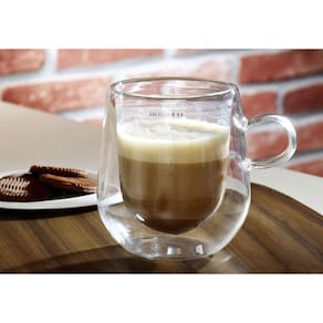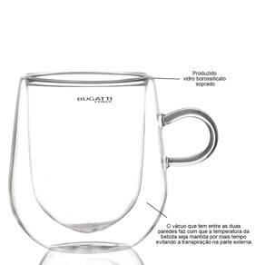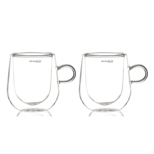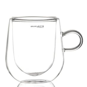 O conjunto de 2 canecas de vidro de borossilicato da Bugatti são ideais para saborear bebidas quentes ou frias, pois a parede dupla funciona como isolante térmico, conservando o calor da bebida sem transmitir o calor para as mãos, mantendo a temperatura quente ou fria por mais tempo.