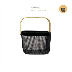 Cesta Organizadora Multiuso com Alça de Madeira - Sofisticação, Praticidade e Estilo em um Só ProdutoOrganize com elegância e transforme a funcionalidade em um detalhe decorativoEssa cesta multiuso une design contemporâneo, materiais de qualidade e versatilidade para acompanhar você em todos os ambientes da casa.Com estrutura em metal resistente e acabamento em tela aramada, essa peça garante excelente ventilação interna e fácil visualização do conteúdo, além de proporcionar um toque industrial moderno ao seu espaço. Seu grande diferencial está nas alças de madeira natural, que trazem leveza estética e facilitam o transporte com segurança e conforto.Seja para organizar produtos de limpeza na lavanderia, utensílios na cozinha, cosméticos no banheiro ou objetos decorativos na sala, essa cesta se adapta perfeitamente às suas necessidades. principais Vantagens:Design moderno e atemporal: combina com diversos estilos de decoração - do rústico ao minimalistaEstrutura firme e durável: feita com metal reforçado e tela resistente ao uso diárioAlças ergonômicas de madeira: além de funcionais, adicionam charme ao visual da peçaArejada e prática: a tela aramada permite ventilação constante e evita acúmulo de umidadeFácil de transportar: leve e com pegada confortável, ideal para mudar de ambiente sem esforçoMultifuncional: perfeita para uso em banheiros, cozinhas, lavanderias, escritórios, salas ou até mesmo como item decorativo em prateleiras Imagens Ilustrativas Dimensões aproximadas:Altura: 18,4 cmLargura: 39,8 cmProfundidade: 24,5 cm Dicas de Uso:Banheiro: guarde toalhas de rosto, sabonetes e óleos essenciaisCozinha: organize temperos, panos de prato ou potes de mantimentosSala: use com livros, revistas ou mantas dobradasLavanderia: acomode produtos de limpeza com estilo e praticidade Não perca a chance de unir organização e bom gosto em um só produto. Marca: Não Informado