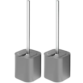 Garantia: 90 dias / Peso: 500g / Cor: cinza / Ref: SS900CHFX2Dimensões dos conjuntos: 11,5cm (C) x 11,5cm (L) x 38cm (A);Dimensões dos suportes: 11,5cm (C) x 11,5cm (L) x 12,5cm (A);Dimensões das escovas sanitárias: 8cm (D) x 36cm (A);Conteúdo: 02 escovas sanitárias com suportes. Limpeza e cuidados:- Lavar com água e sabão neutro, utilizando esponja macia, seguido de pano seco;- Não utilizar produtos químicos ou abrasivos na limpeza;- Evitar batidas e contato com objetos cortantes.Detalhes do produto:- Escova desmontável, permite trocar apenas a base com cerdas para reposição;- Reservatório de água que impede que as cerdas fiquem molhadas; - Sistema de abertura e fechamento acionado pela própria escova;- Com tampa, deixando o produto mais vedado;- Este produto é BPA FREE.Materiais:- Polipropileno: suporte;- Nylon: cerdas;- Aço: haste.Este conjunto de banheiro com dois suportes com escovas para vaso sanitário na cor cinza da linha Dual possui design modular, minimalista, indispensável na composição do seu banheiro ou lavabo. As escovas deixam o seu vaso limpo e cheiroso, sem precisar entrar em contato com ele, tornando a higienização mais fácil e prática. E após a limpeza, as escovas sanitárias são colocadas nos suportes sem causar sujeira, os suportes possuem tampas que os mantém mais vedados e a abertura e fechamento é acionado pelas próprias escovas. É o conjunto perfeito para deixar o seu banheiro limpo, bonito e organizado.