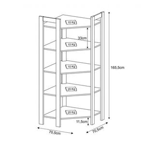 Medidas (estante de canto): 166x71x71 cm (AxLxP).