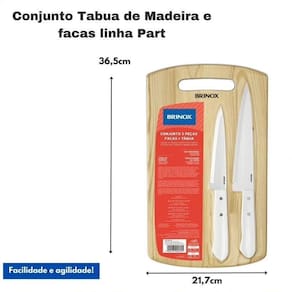 Versatilidade e PraticidadeEste conjunto é ideal para diversas tarefas culinárias, desde o corte de carnes e legumes até o preparo de refeições mais elaboradas. A tábua de madeira oferece uma superfície ampla e resistente para cortes precisos e seguros, enquanto as facas proporcionam eficiência e facilidade no preparo dos alimentos.