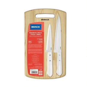 Conjunto de Facas com Tábua de Madeira 3 PeçasFacas em Aço InoxidávelCabos em abs BrancoDurabilidade e Precisão