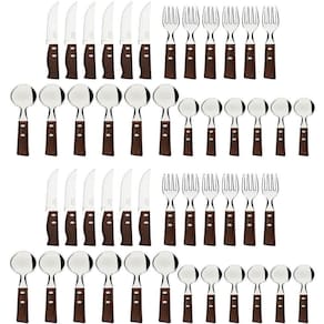 DIMENSÕES - Dimensões da Embalagem (Compr. X Larg. X Alt.): 183x52x220 mm. É kit de : Sim | Quantidade de peças: 48 | Tipo de embalagem: Caixa litografada | Material do cabo: Madeira | Material da lâmina: Aço inoxidável | Talheres incluídos: 12 Colher de Mesa Tradicional, 12 Colher para Chá Tradicional, 12 Faca para Churrasco/ Frutas 5 Tradicional, 12 Garfo de Mesa Tradicional | Linha: Tradicional Madeira | Cor: Marrom | Peso Líquido: 2.0500 | ProdutoComprimento-cm: 7 | EmbalagemLargura-cm: 29 | ProdutoLargura-cm: 20.5 | ProdutoAltura-cm: 29.5 | Largura Produto: 20.5 | Comprimento Produto: 7 | Altura Produto: 29.5 | Dias Fornecedor: 1 | Marca: Tramontina | Cubagem: 0.009280 | EmbalagemAltura-cm: 16 | EmbalagemComprimento-cm: 20 | Modelo: Tradicional