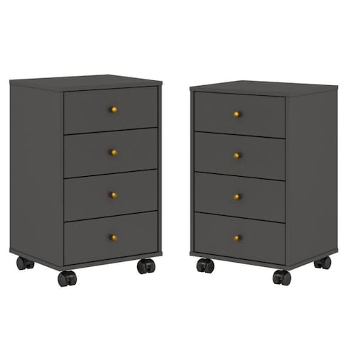 Conjunto 2 Gaveteiros Com Rodízios Lion Mitchell Grafito - Marrom