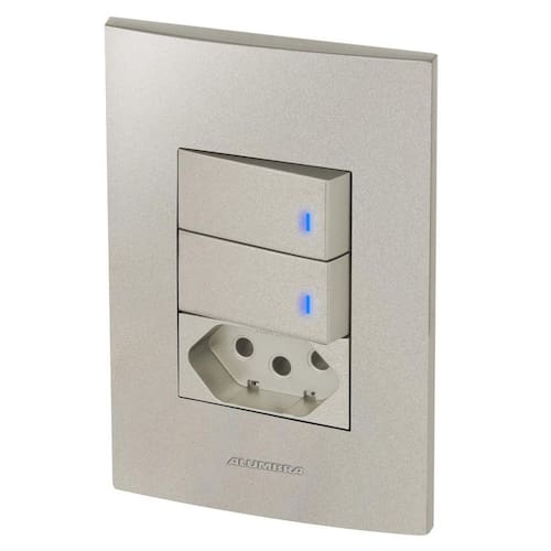 Alumbra Inova Pro Class - Placas Titanium / Módulos Titanium Linha Modular de Interruptores e Tomadas Conjunto Completo Desmontado: 2 Módulos de Interruptor com LED Serve tanto para ligação simples como em paralelo 1 Módulo de Tomada 10A 1 Placa 4X2 para 3 Módulos 1 Suporte 4X2 2 Parafusos Cor: Titanium Para montar é apenas um click, só encaixar