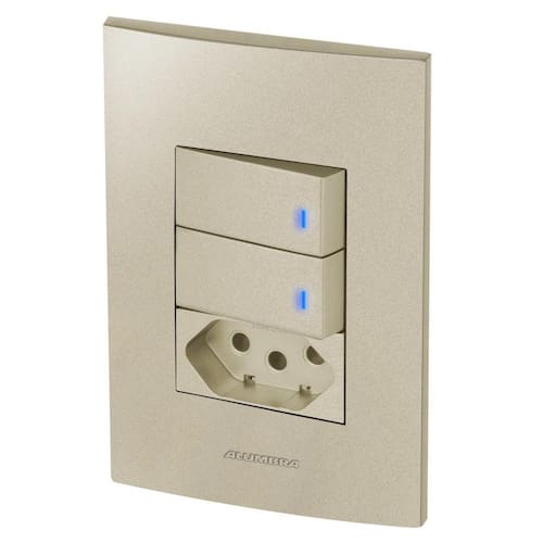 Alumbra Inova Pro Class - Placas Champanhe / Módulos Champanhe Linha Modular de Interruptores e Tomadas Conjunto Completo Desmontado: 2 Módulos de Interruptor com LED Serve tanto para ligação simples como em paralelo 1 Placa 4X2 para 3 Módulos 1 Suporte 4X2 2 Parafusos Cor: Champanhe Para montar é apenas um click, só encaixar