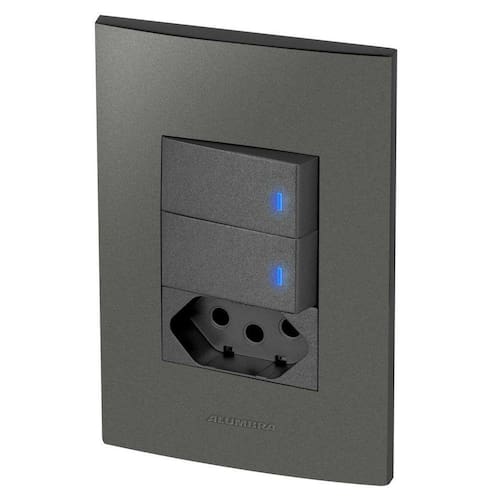Alumbra Inova Pro Class - Placas Grafite / Módulos Grafite Linha Modular de Interruptores e TomadasConjunto Completo Desmontado:2 Módulos de Interruptor com LED Serve tanto para ligação simples como em paralelo 1 Placa 4X2 para 3 Módulos1 Suporte 4X22 ParafusosCor: GrafitePara montar é apenas um click, só encaixar Marca de conformidade de produtos certificados.