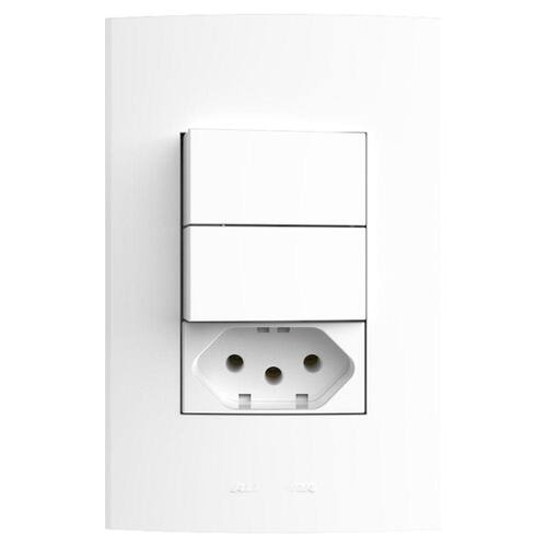 Conjunto 2 Interruptores Simples + 1 tomada 2 Pólos 10A 250V~ com placa 4x2 Inova Pro Alumbra Branco