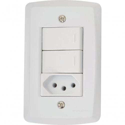 Conjunto 2 Interruptores Vertical E 1 Tomada 2p+t Lux 10a 250v 4 X 2 - Tramontina As placas e módulos da linha Lux são fabricadas em termoplástico com acabamento brilho na cor branca, que não retém poeira, unindo qualidade e praticidade. O sistema é modular, em uma peça: placa com suporte incorporado. Acompanham parafusos para a instalação. Especificações Corrente 10A Cor Branco Tensão Máxima 250 V Linha Lux Material Termoplástico Altura 5 cm Largura 9 cm Comprimento 15 cm Peso Bruto 0.8 kg Ean: 7891435044584