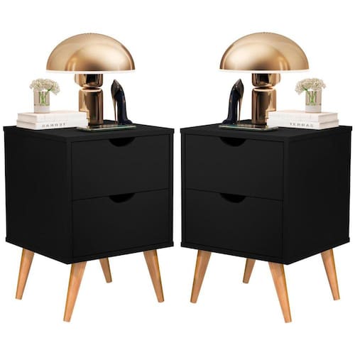 Dimensões do produto montado:- Altura: 58 cm- Largura: 39,6 cm- Profundidade: 35,5 cmCaracterísticas:- Pintura ultravioleta;- 2 gavetas com puxadores novo designer;- Corrediças metálicas;- Pés em madeira maciça.-Peso máximo por gaveta 5kgINSTRUÇÕES DE USO E MANUTENÇÃO:Limpar apenas com pano levemente umedecido com água- Os objetos que ambientam as fotos não acompanham o produto;- O produto será entregue desmontado;