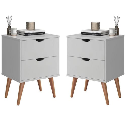 Conjunto 2 Mesa De Cabeceira Decore Madri Retrô Para Quarto - Branco