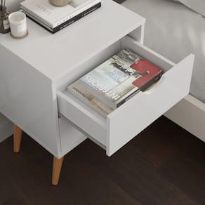 Dimensões do produto montado:- Altura: 58 cm- Largura: 39,6 cm- Profundidade: 35,5 cmCaracterísticas:- Pintura ultravioleta;- 2 gavetas com puxadores novo designer;- Corrediças metálicas;- Pés em madeira maciça.-Peso máximo por gaveta 5kgINSTRUÇÕES DE USO E MANUTENÇÃO:Limpar apenas com pano levemente umedecido com água- Os objetos que ambientam as fotos não acompanham o produto;- O produto será entregue desmontado;