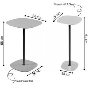 - Mesa Baixa: 55 cm (A) X 36 cm (L) X 36 cm (P)
