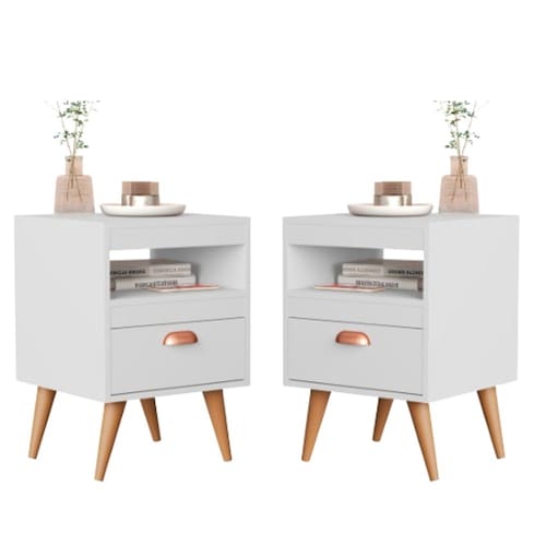 Conjunto 2 Mesas de Cabeceira Sal Branco - Rede Móveis