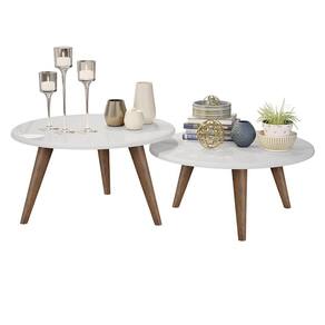 Conjunto 2 Mesas de Centro Redondas Madeira Pé Palito ? Movelove