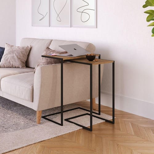 Conjunto 2 Mesas Laterais Industrial Artesano Vermont/Preto - Marrom