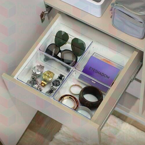 Seu uso é ideal para escritórios, organização de acessórios (como óculos, joias e bijuterias), maquiagens, utensílios, talheres, coleções, e o que a imaginação permitir.