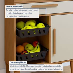 Se você busca uma cozinha completa que une praticidade, organização e design, essa é a escolha perfeita! Com uma fruteira com nichos, você tem espaço de sobra para armazenar frutas e outros itens essenciais do dia a dia. Com design moderno, o balcão multiuso para cozinha é perfeito para quem busca espaço e ainda dar um Up na decoração. Pensado para acomodar seu cooktop com segurança, ele ainda oferece um nicho perfeito para micro-ondas, forno elétrico ou outros eletrodomésticos essenciais.