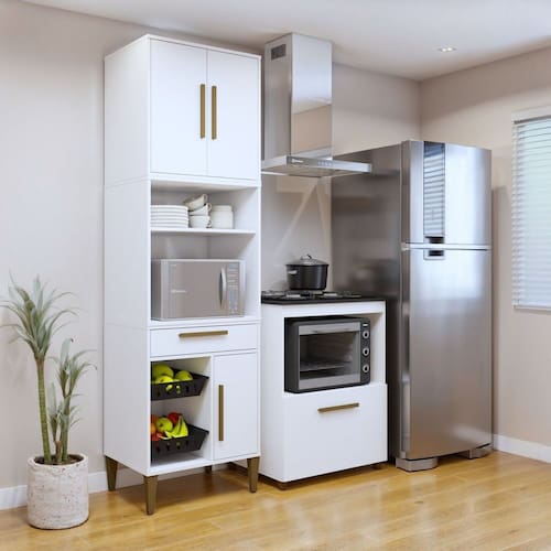 Transforme sua cozinha com essa combinação perfeita de balcão para cooktop e paneleiro com nicho e fruteira! Com um design moderno e funcional, o balcão acomoda seu cooktop com segurança e ainda conta com um nicho ideal para micro-ondas ou forno elétrico. Já o paneleiro oferece espaço de sobra para organizar panelas, frutas e eletrodomésticos, mantendo tudo no lugar sem bagunça. Mais praticidade, mais organização e muito mais estilo para sua cozinha!