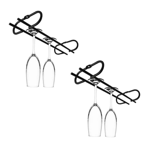 Conjunto 2 peças Porta Taças de Teto 25cm Suporte para Taças Suspenso Reto Preto Fosco #Conjunto de aramados #Taças organizadas #Linha Back Garantia: 3 meses / Peso: 256g / Cor: preto fosco / Ref: 83067X2 Dimensões: 25cm (C) x 9,5cm (L) x 4cm (A); Distância entre os parafusos: 18,5cm (C); Distância das hastes: 2cm (L); Abertura para base da taça: 8cm (L); Conteúdo: 2 suportes: Não acompanha parafusos e buchas. Cuidados: Não lavar com materiais abrasivos. Material: - Aço SAE1006/1008; - Pintura eletrostática. O kit de porta taças suspenso é ideal para quem quer otimizar espaço dentro do armário ou para deixar o espaço do bar mais sofisticado. Cada porta taças possui abertura para taças com base de até 8cm sendo compatível com modelos de taças para vinho, gin, champanhe, entre outros. O porta taças de teto é instalado na parte superior do móvel de forma fixa por dois parafusos. Organize seus armários de forma fácil e segura com o conjunto de suportes para pendurar taças.