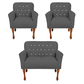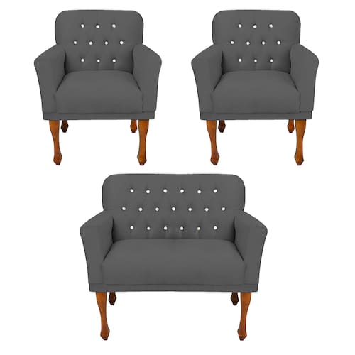 Conjunto 2 Poltrona e Namoradeira Estofada Com Botões de Strass Anitta Suede Cinza LM DECOR