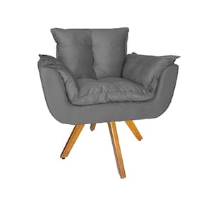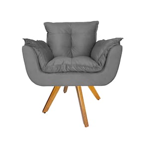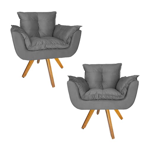 Conjunto 2 Poltrona Estofada Base Giratória De Madeira Clínica Opala Suede Cinza - LM DECOR