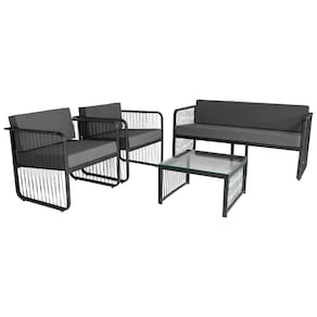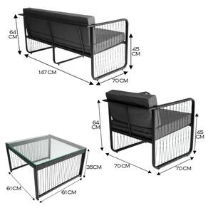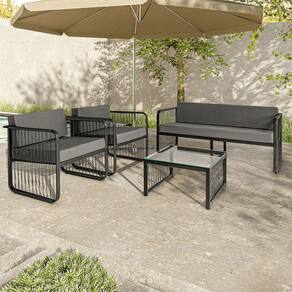 Conjunto 2 Poltronas 1 Namoradeira e 1 Mesa de Centro Santiago em Alumínio e Fibra Sintética Acesse Móveis - Cinza