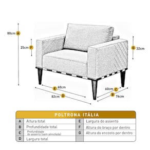 Dimensões da Poltrona: Altura: 80 cm Largura: 82 cm Profundidade: 76 cm Peso: 21,7 Kg Suporta até 140 Kg