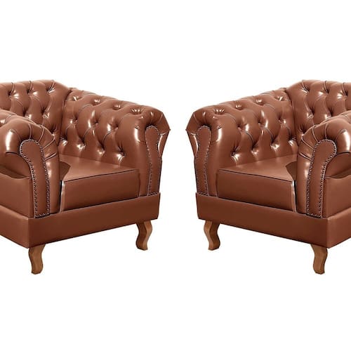 A entrega é realizada no térreo. Produto Montado: Sim Acompanha Almofadas extras: Não Almofada do assento: Removível Almofada do encosto: Não Possui Altura do assento até o chão: 41.0000 Altura do Encosto: 82 cm Ambiente Principal: Sala de Estar codigo_ean: 7909903709818 Complexidade da Montagem: Baixa: pode ser montado por uma pessoa sozinha Cor: Caramelo Cor do Produto: Caramelo Densidade do Assento: D-26 Enchimento do Assento: Espuma Estilo de Braço: Braços Redondos Firmeza do Assento: Macio Informações Complementares: 120Kg por acento Itens Inclusos: 2 Poltronas Dom Pedro (incluindo seus respectivos pés apenas pra enroscar) Linha ou Coleção: Chesterfield Necessita Montagem: Sim Origem do Produto: Nacional Peso: 35 kg Pet Friendly: Não Possui Percintas Elásticas: Sim Possui Pés: 04 Possui Rodízio: Não Quantidade de Itens: 2 Recomendações de Uso, Manutenção e Limpeza: Limpeza e cuidados: pode ser utilizado aspirador de pó, escova com cerdas macias ou limpeza a seco. Não utilizar produtos químicos, abrasivos ou limpeza a vapor. Evitar exposição prolongada ao sol. Sistema de Montagem: Enroscar os Pés Suporta Até (kg): 120 kg Tecido Predominante: Couro Sintético Tipo de Encosto: Fixo Tipo de Mola: Não Possui