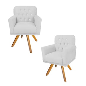 Conjunto 2 Poltronas Decorativas Base Giratória de Madeira Sala Anitta Corano Branco LM DECOR