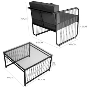 Conjunto 2 Poltronas E Mesa Centro Fibra Sintética Córdova Preto/cinza Que tal trazer sofisticacao e conforto para sua area externa com o Conjunto Cordova. Composto por 2 Poltronas e 1 mesa de centro, este conjunto e ideal para areas gourmet, churrasqueira, recepcao, ediculas e outros ambientes internos. Sua estrutura em aco carbono e acabamento em fibra sintetica garantem resistencia e durabilidade, enquanto o design moderno e a producao artesanal conferem um toque exclusivo e unico ao seu espaco. As poltronas possuem encosto e assentos estofados com tecido impermeavel, oferecendo maior conforto e praticidade para longos momentos de relaxamento. Perfeito para quem deseja um ambiente elegante e funcional para receber amigos e familia.