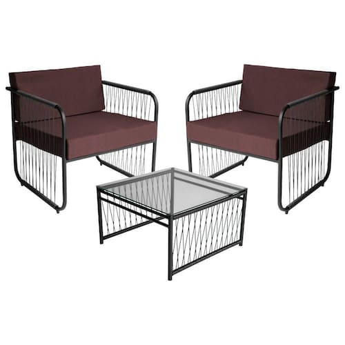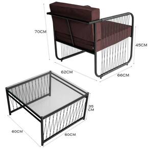 Conjunto 2 Poltronas E Mesa Centro Fibra Sintética Córdova Preto/marrom Que tal trazer sofisticacao e conforto para sua area externa com o Conjunto Cordova. Composto por 2 Poltronas e 1 mesa de centro, este conjunto e ideal para areas gourmet, churrasqueira, recepcao, ediculas e outros ambientes internos. Sua estrutura em aco carbono e acabamento em fibra sintetica garantem resistencia e durabilidade, enquanto o design moderno e a producao artesanal conferem um toque exclusivo e unico ao seu espaco. As poltronas possuem encosto e assentos estofados com tecido impermeavel, oferecendo maior conforto e praticidade para longos momentos de relaxamento. Perfeito para quem deseja um ambiente elegante e funcional para receber amigos e familia.