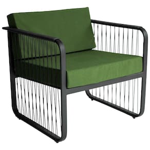 Conjunto 2 Poltronas E Mesa Centro Fibra Sintética Santiago Preto/verde Que tal trazer sofisticacao e conforto para sua area externa com o Conjunto Santiago. Composto por 2 Poltronas e 1 mesa de centro, este conjunto e ideal para areas gourmet, churrasqueiras, ediculas e outros ambientes externos. Sua estrutura em aluminio e acabamento em fibra sintetica garantem resistencia e durabilidade, enquanto o design moderno e a producao artesanal conferem um toque exclusivo e unico ao seu espaco. As poltronas possuem encosto e assentos estofados com tecido impermeavel, oferecendo maior conforto e praticidade para longos momentos de relaxamento. Perfeito para quem deseja um ambiente elegante e funcional para receber amigos e familia.