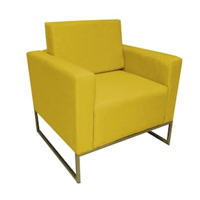 Conjunto 2 Poltronas Estofada Com Base de Ferro Para Clínica Leticia Pé Ferro Suede Amarelo - LM DECOR