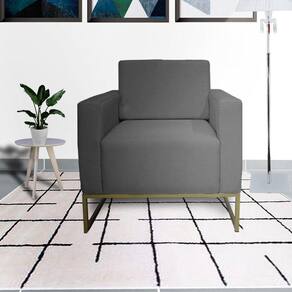 Conjunto 2 Poltronas Estofada Com Base de Ferro Para Clínica Leticia Pé Ferro Suede Cinza - LM DECOR
