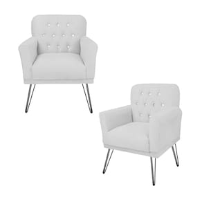Conjunto 2 Poltronas Estofada Para Escritório Pés de Ferro Anitta Corano Branco - LM DECOR
