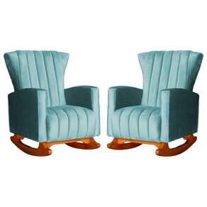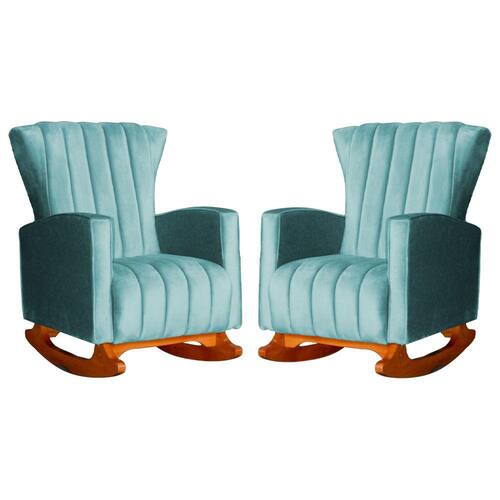 Conjunto 2 Poltronas Estofadas de Balanço Melinda Veludo Azul Turquesa - LM DECOR
