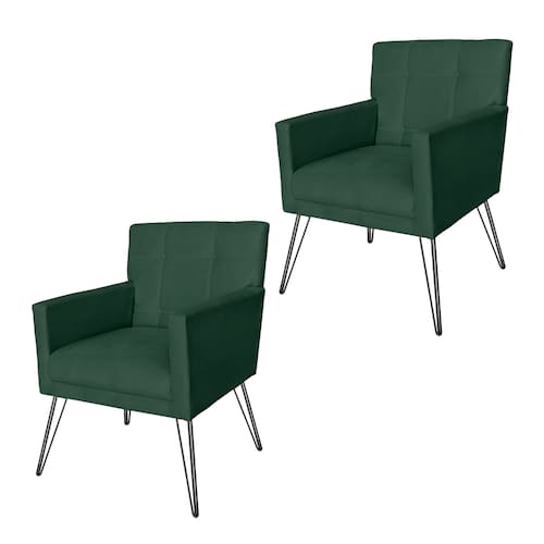 Conjunto 2 Poltronas Estofadas Para Clínica Pés de Ferro Onix Suede Verde - LM DECOR