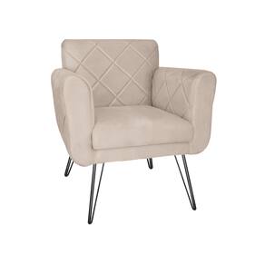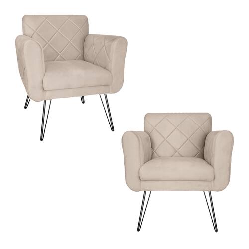 Conjunto 2 Poltronas Estofadas Para Consultório Pés de Ferro Isabella Suede Bege - LM DECOR
