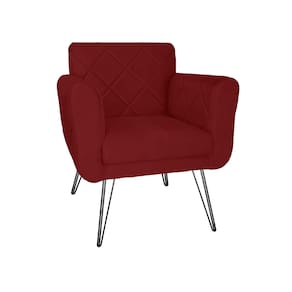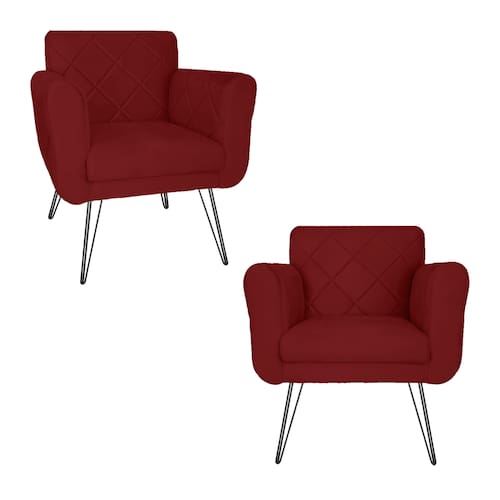 Conjunto 2 Poltronas Estofadas Para Consultório Pés de Ferro Isabella Suede Vermelho Bordo - LM DECOR